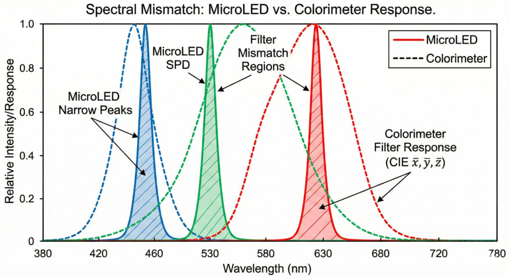 Precise spectral matching between ReaLité and the AR light engine mitigates the slope errors inherent in standard colorimeter filters. By combining best-fit alignment with exceptional wavelength stability, ReaLité ensures that spectral mismatch correction methods remain valid, delivering accurate performance data for narrowband laser and microLED devices.
